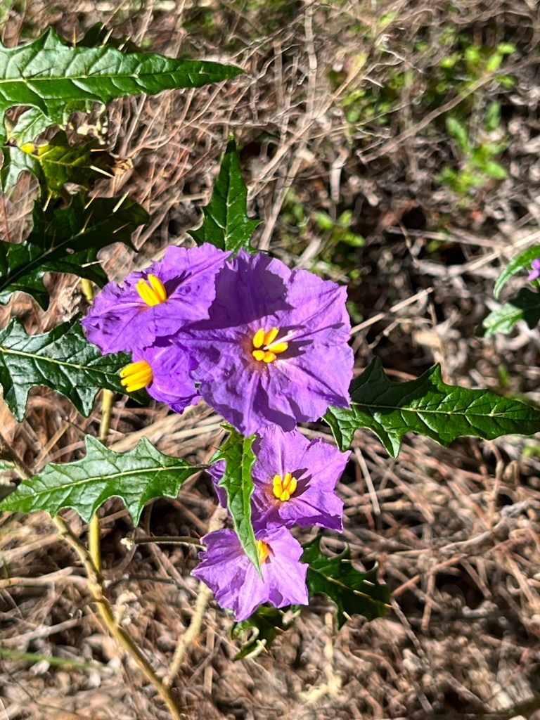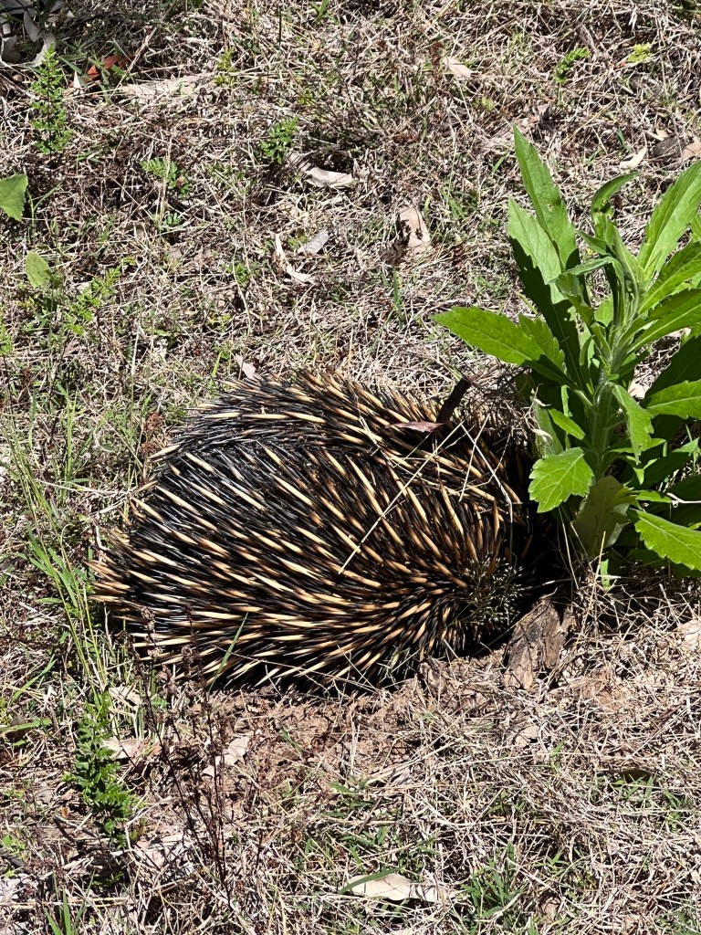 On the other side of the creek the track heads slowly up hill to the campground, more wildflowers and an echidna rooting around under a plant for something tasty.