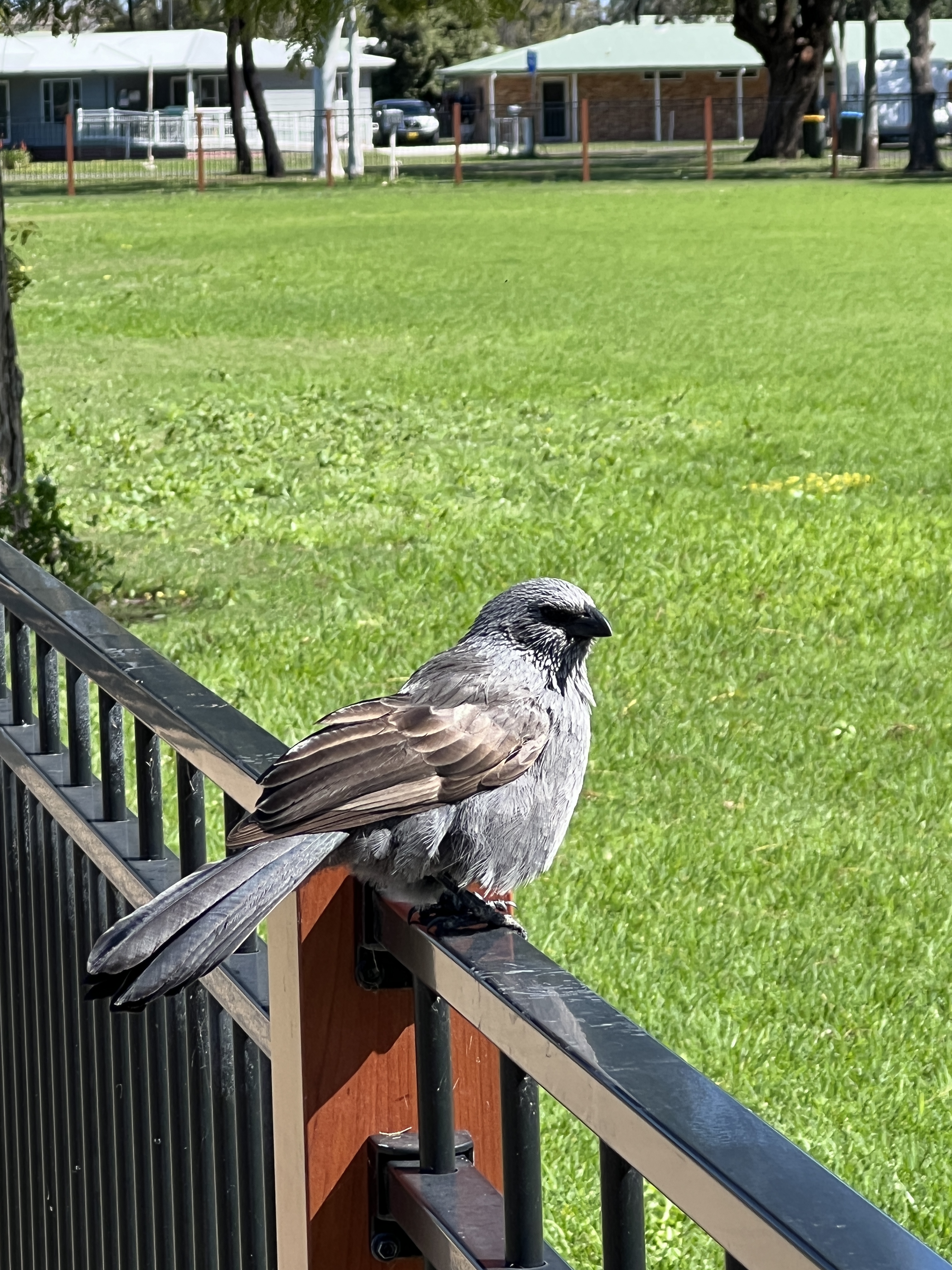 Had some snags on the BBQ for dinner, watched on by a cunning Currawong.