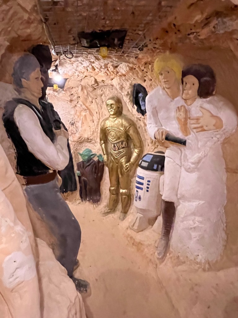 Not far from Lunatic Hill, there is a tour of an underground mine that we ventured on. It was not so much to see mining operations but rather hundreds of carvings down the mine by an old timer.