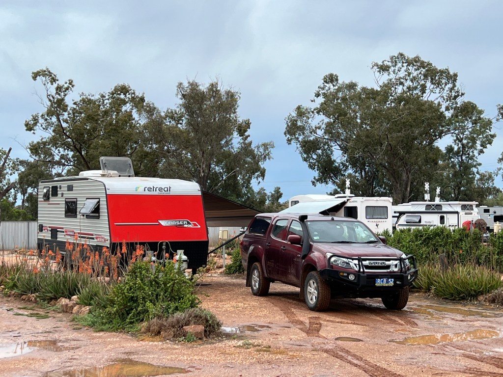 Arrived at the camp for a late lunch after setting up. Put our feet up for the afternoon. Rain came down in buckets for about an hour at around 4pm, caravan park with great pools of water. We are on slightly higher ground so spared the puddles and mud.