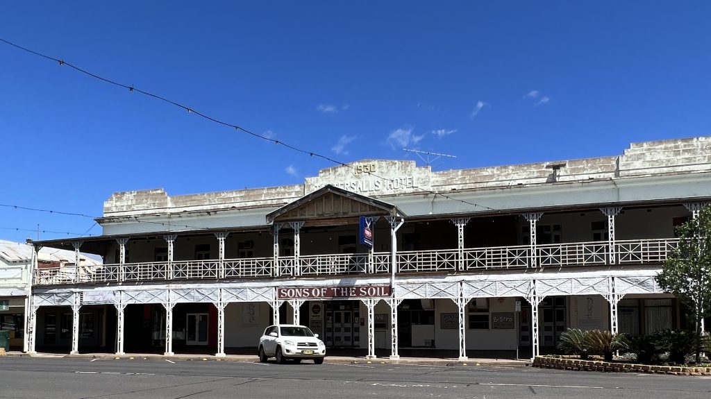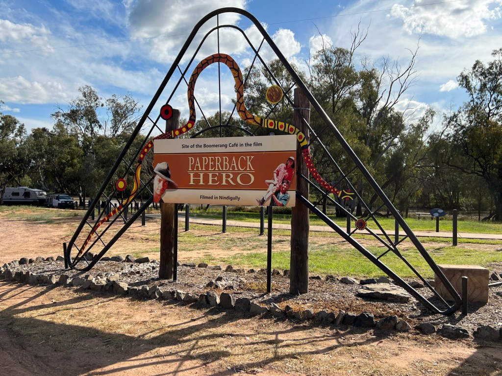 Nindigully’s other claim to fame is as the location for the 1999 film Paperback Hero, the big boomerangs from the film remain perched in the grounds. It was one of Hugh Jackman’s first film roles.
